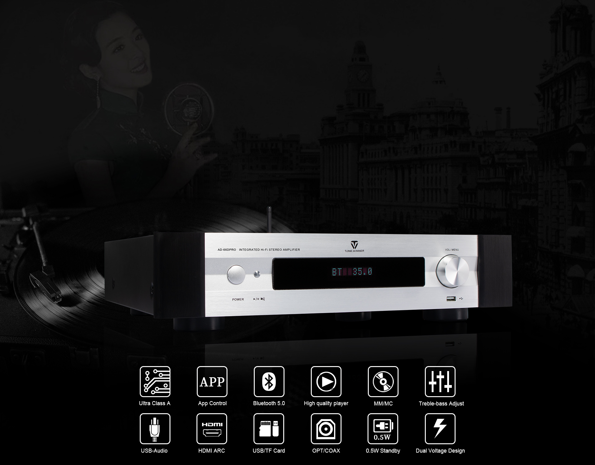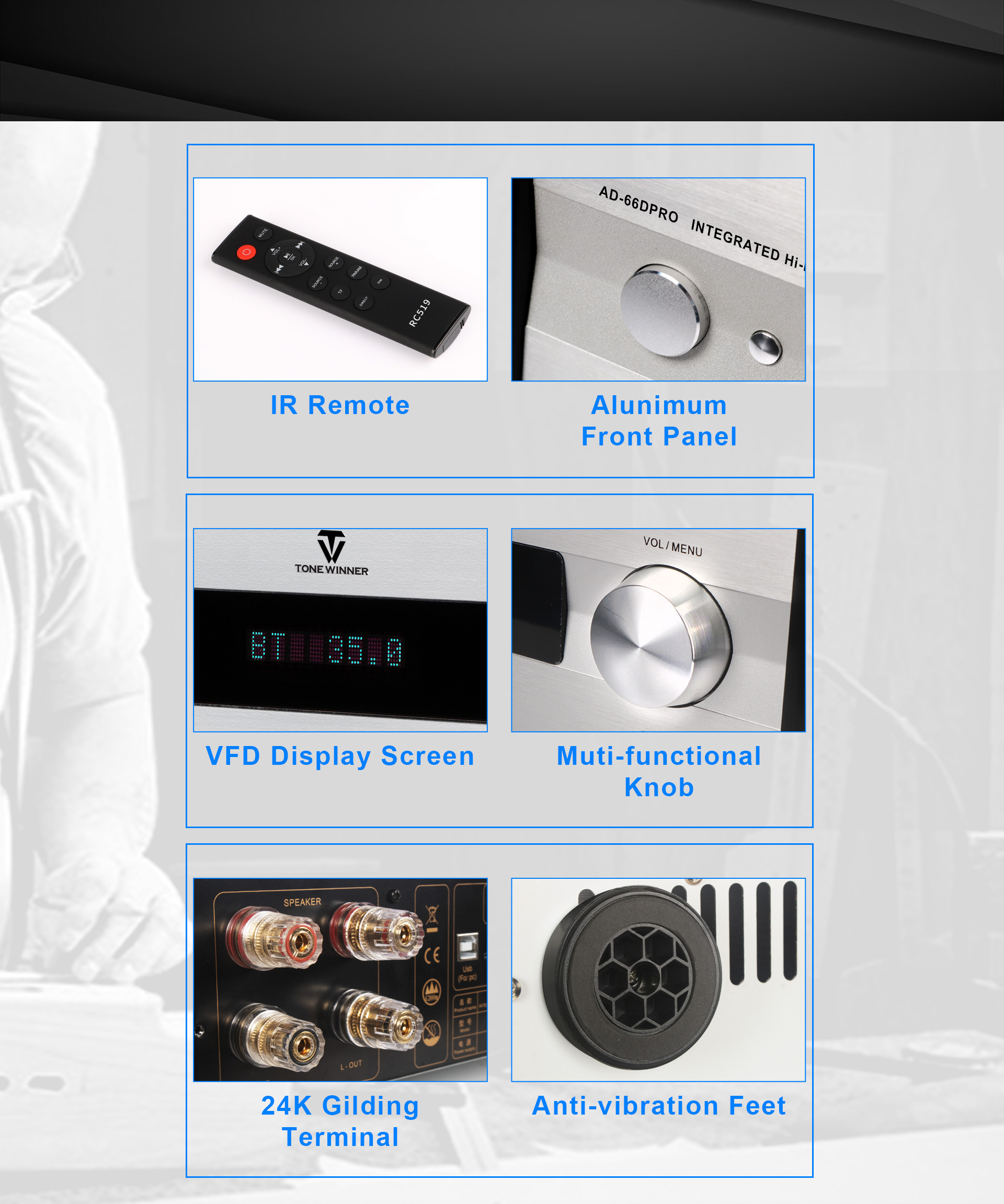 L'AD-66DPRO è una versione aggiornata dell'AD-66D. È dotato di una nuova interfaccia phono MM/MC, della versione Bluetooth aggiornata alla versione 5.0 e di una nuova APP per dispositivi mobili. L'AD-66DPRO mantiene i vantaggi più apprezzati e, grazie alle nuove funzionalità, è un amplificatore Hi-Fi di fascia base altamente raccomandato.