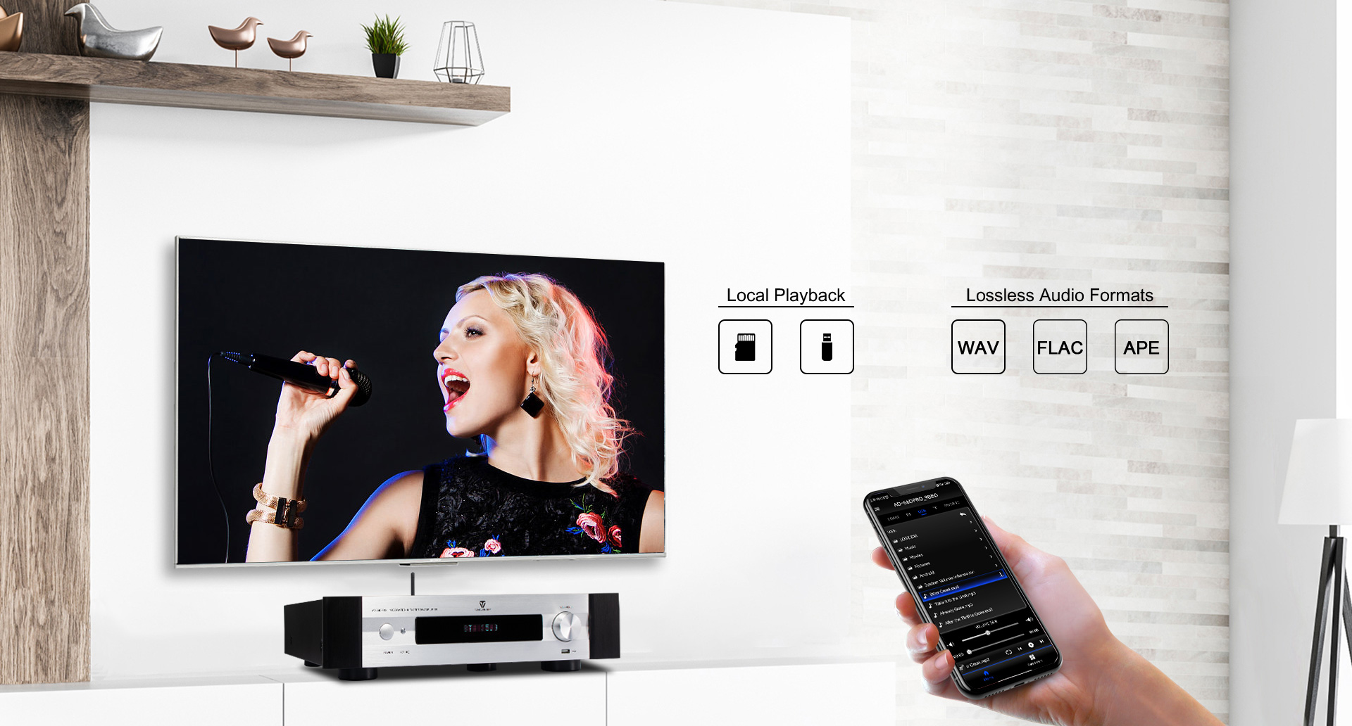 Supporta unità USB da 128 GB e schede TF, compatibile con i formati audio lossless WAV, FLAC e APE.
