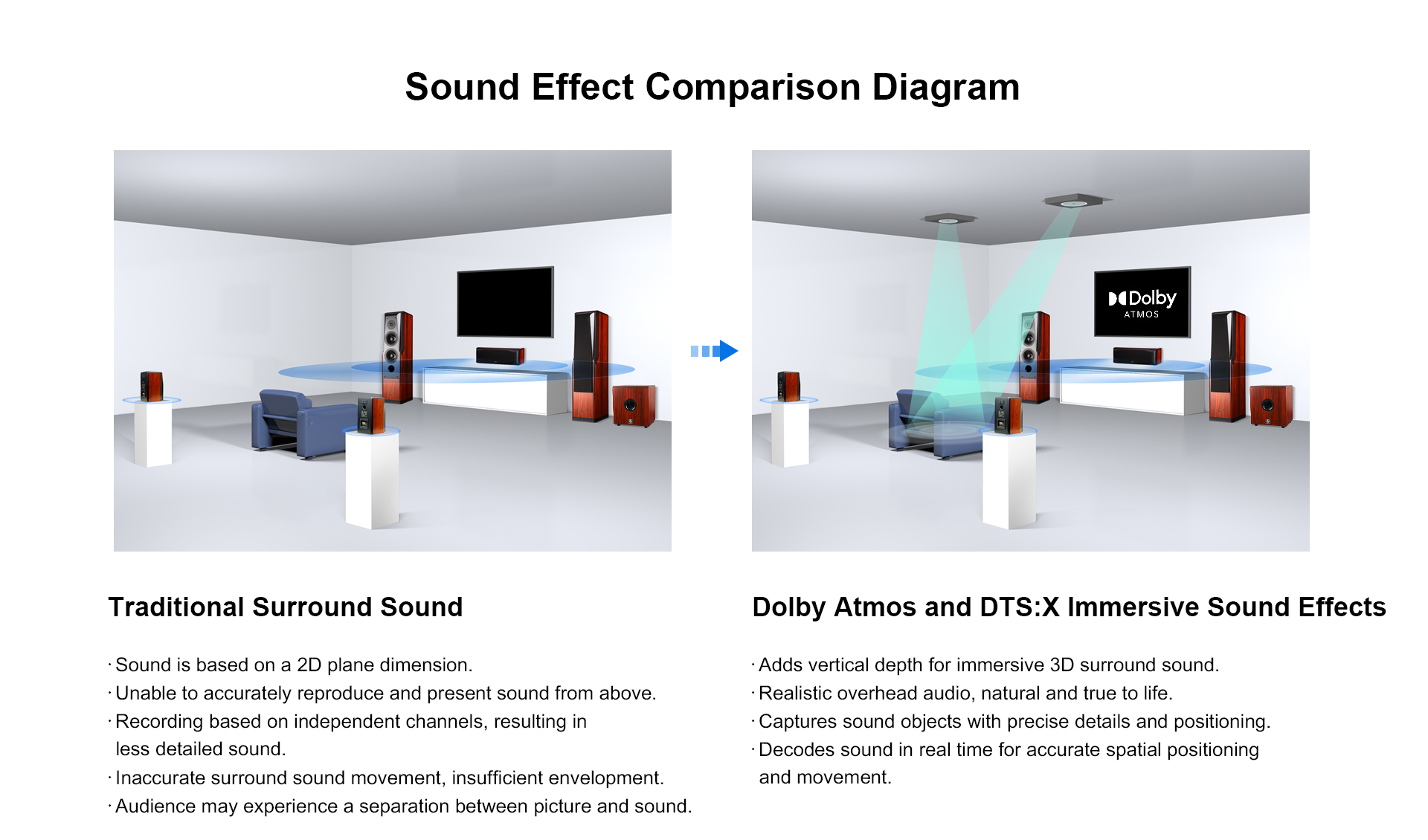 Supporta gli effetti audio immersivi Dolby Atmos e DTS:X, trasformando momenti ordinari in immagini straordinarie, con musica e personaggi mozzafiato.