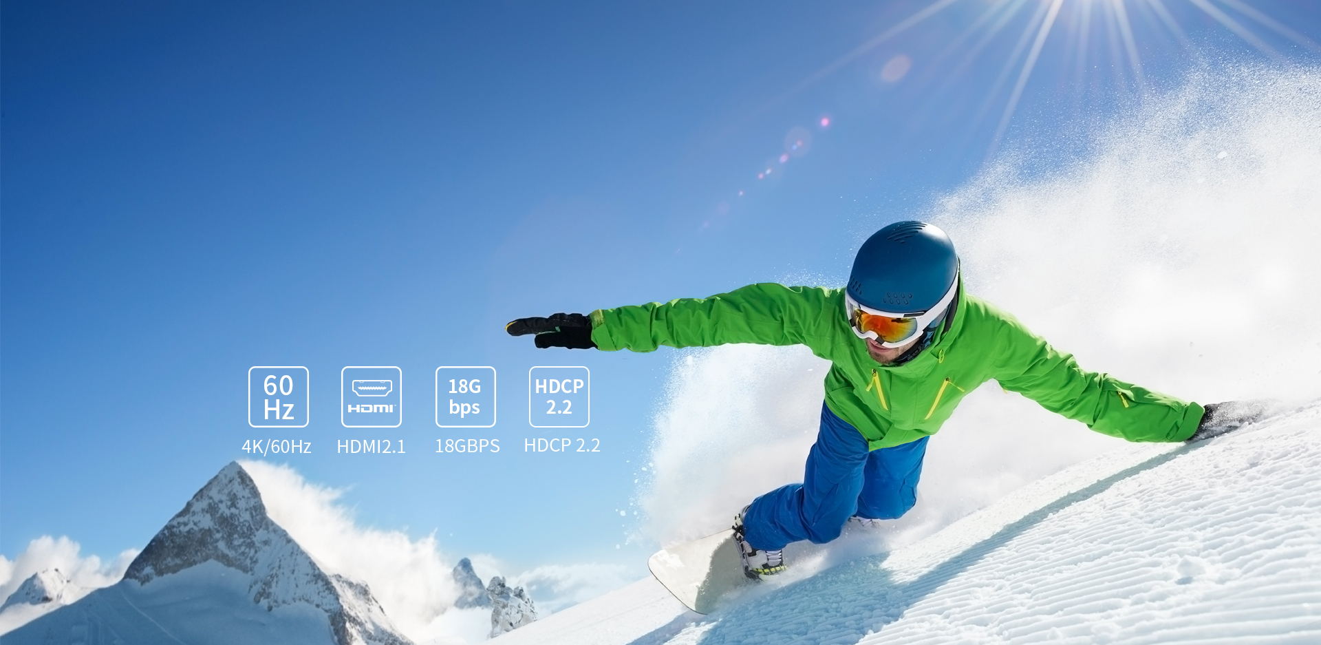 Larghezza di banda fino a 18 G, pixel video ad alta definizione 4K da 3840*2160, quattro volte superiori a quelli dell'alta definizione tradizionale 1080P, grazie alla tecnologia RGB4:4:4, contrasto e luminosità dell'immagine migliorano notevolmente, liberando al meglio il potenziale della qualità del suono e dell'immagine in film e giochi.