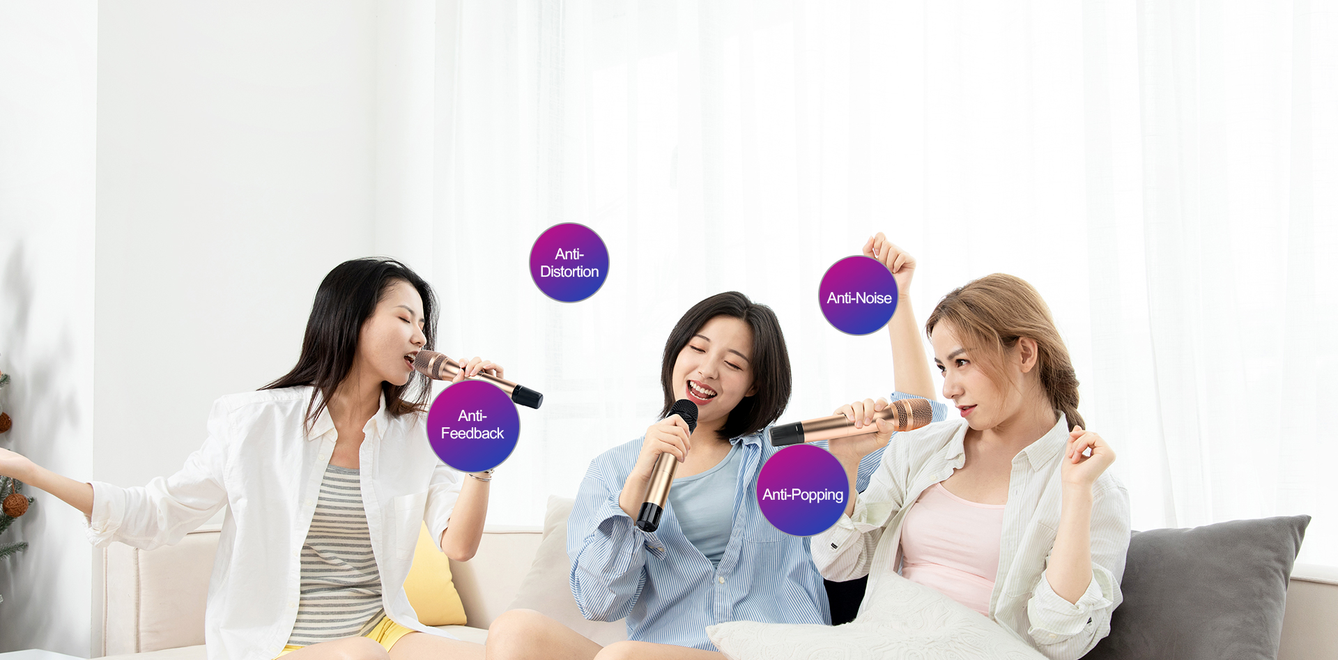 Preimpostato con vari effetti sonori professionali per karaoke, uno spazio musicale tridimensionale completo che ti consente di provare la gioia di un concerto personale in pochi minuti.