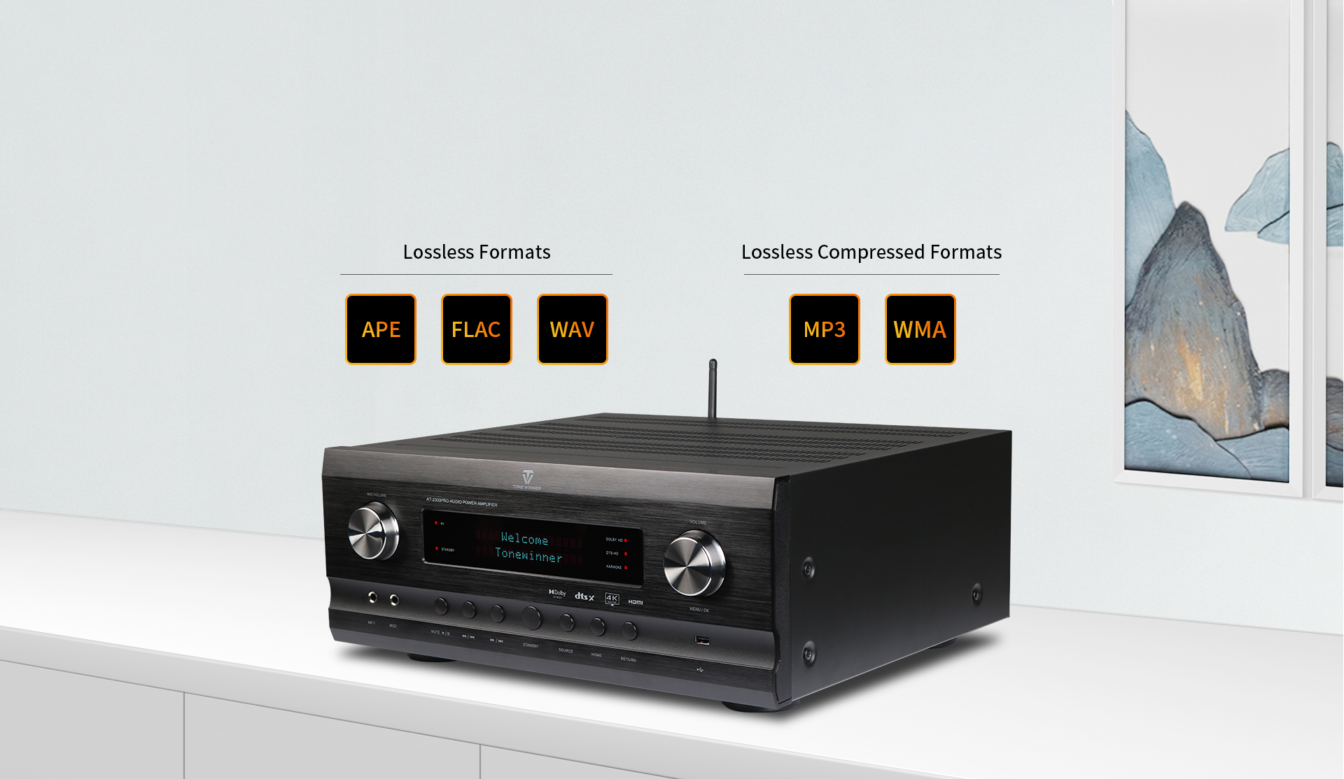 Supporta formati musicali multicanale come DTS 5.1, ricreando in modo autentico l'ambiente di registrazione di grandi sinfonie e creando un campo sonoro stereo realistico e naturale.