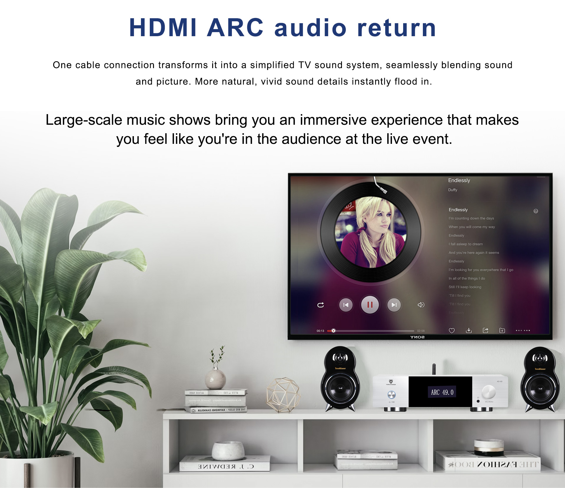Collega l'amplificatore a un televisore che supporta ARC tramite cavo HDMI o ottico,