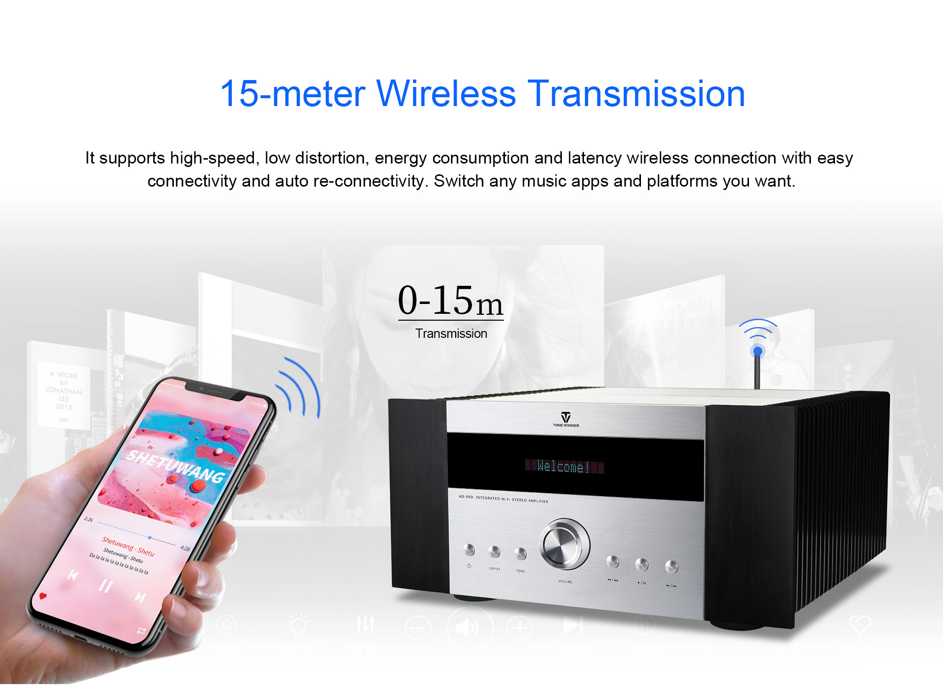 L'AD-99D è uno speciale amplificatore integrato Hi-Fi di Classe A che supporta dischi USB da 128 GB, schede TF e formati audio lossless tra cui WAV, FLAC, APE, ecc. Supporta inoltre la regolazione indipendente di alti e bassi, l'uscita subwoofer e il controllo tramite app originale. In qualità di fornitore originale, Tonewinner accoglie sempre con calore distributori, partner e clienti in tutto il mondo.